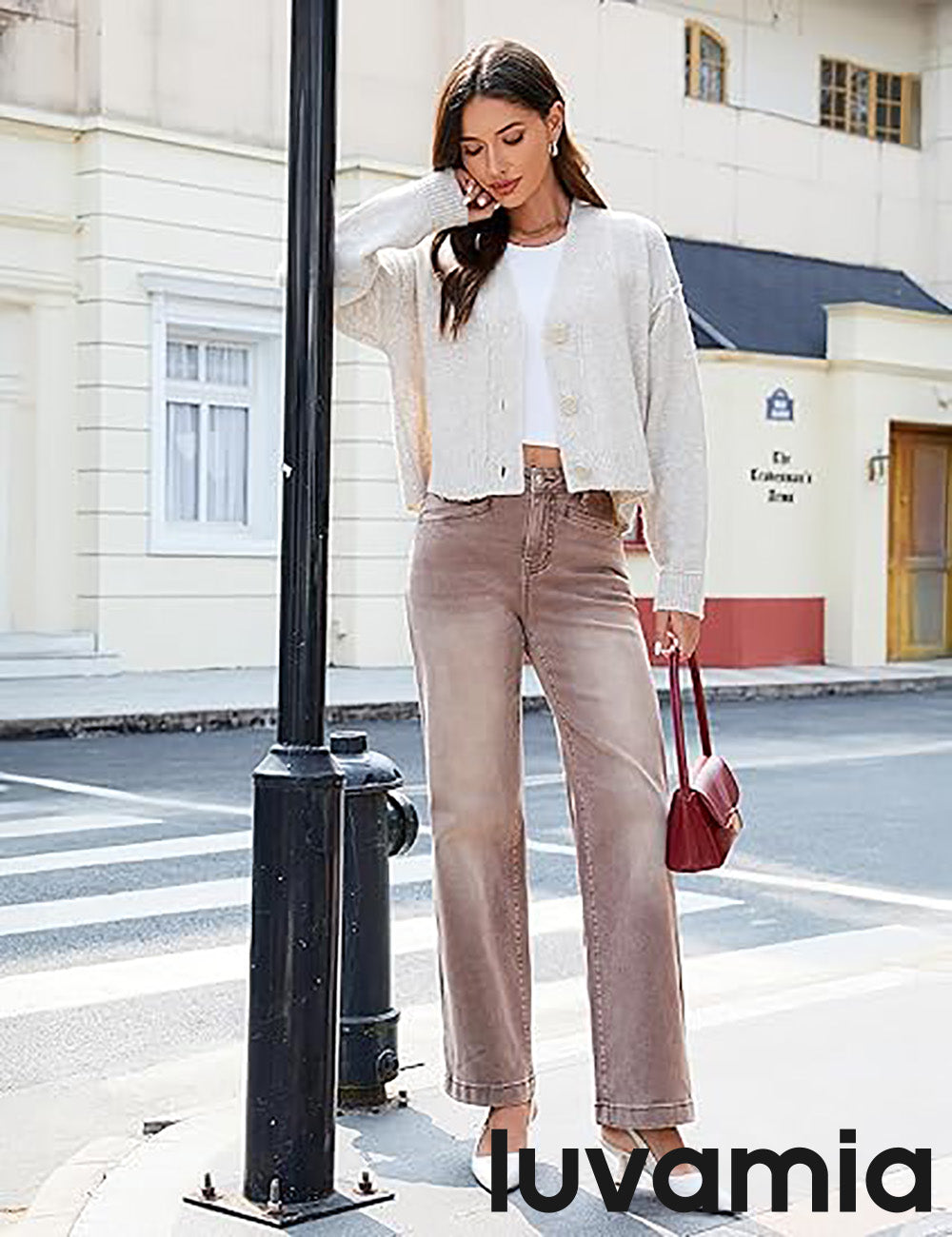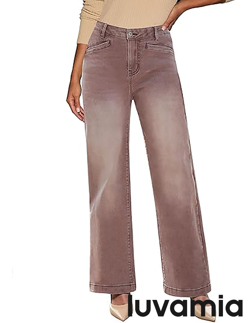 LUVAMIA Women's Wide-leg Jeans High Waist Fashion Jeans Trousers Jeans Versatile Commuter Style