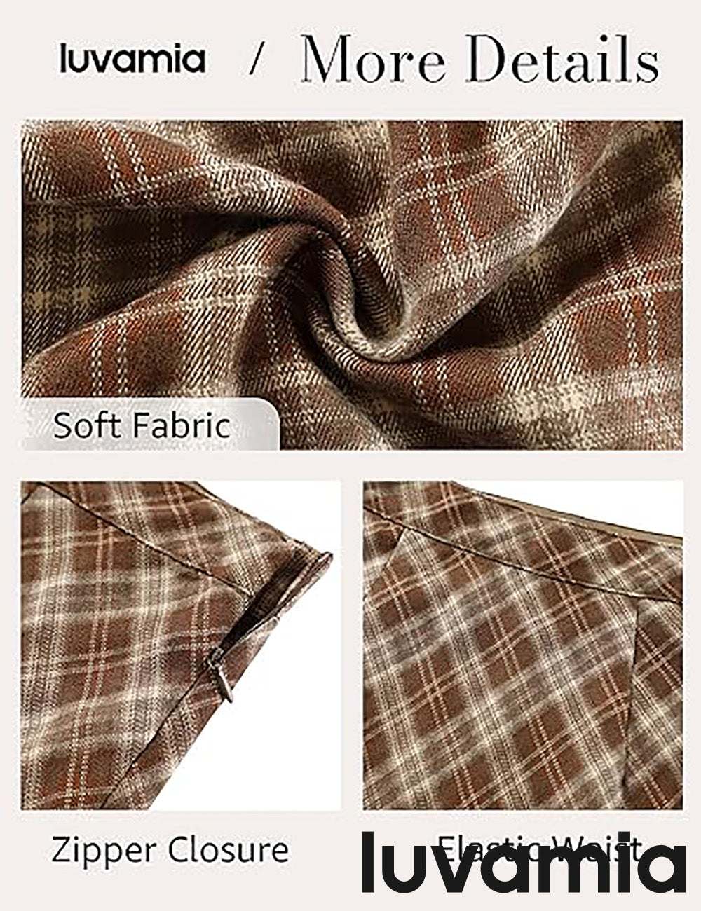 luvamia Plaid Skirts for Women Midi Length High Waisted Trendy A Line Elastic Waist Casual Office Work Fall Skirt