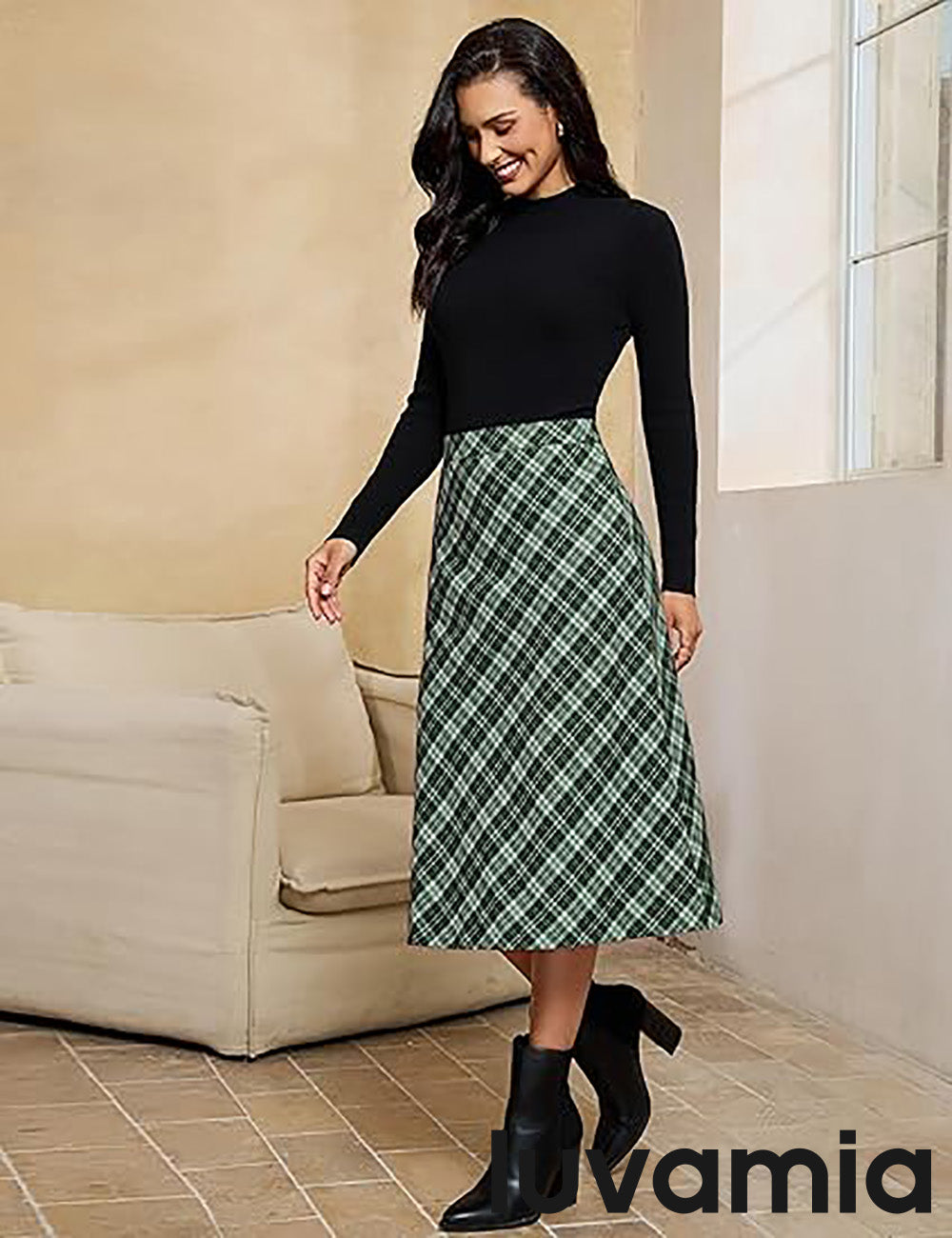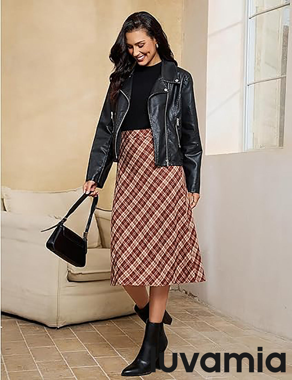 - Designed with a classic A-line cut that gracefully flows from the waist, this plaid holiday skirt elegantly skims over your hips and thighs. The versatile midi-length offers a modest and chic style, makes these fall skirts for women suitable for various occasions.