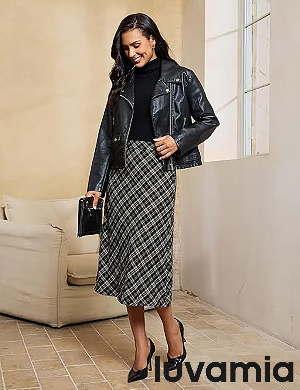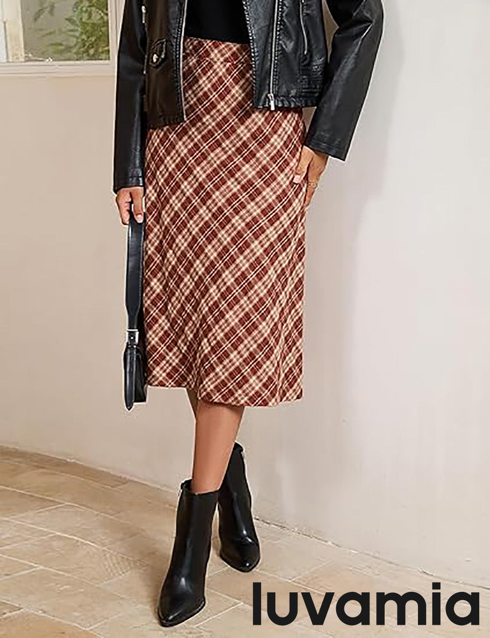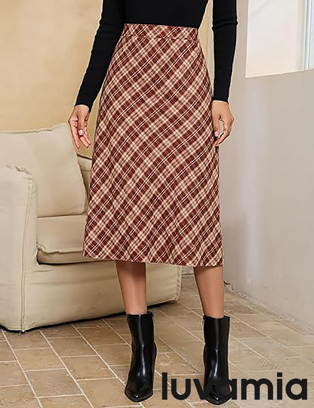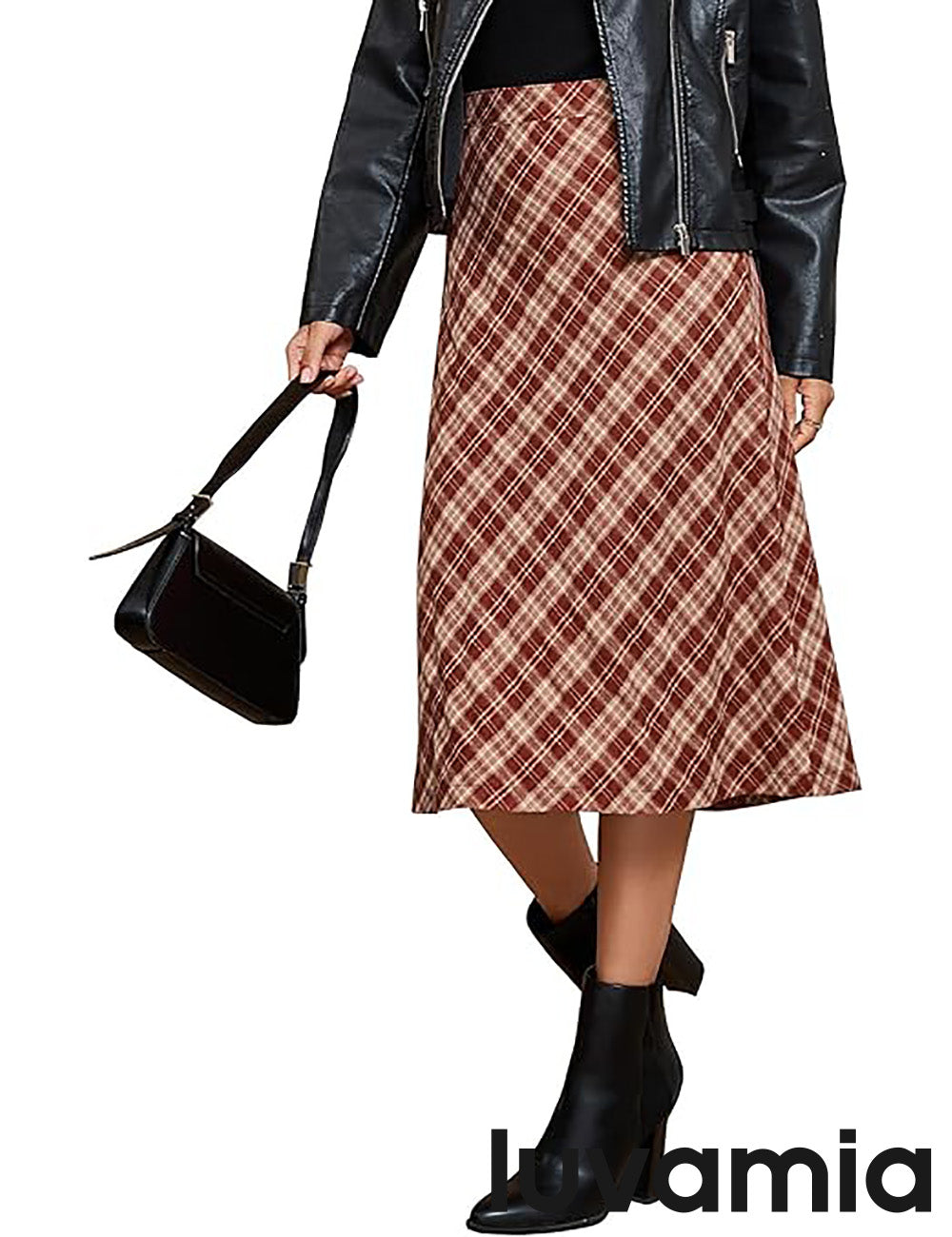 - Crafted from a soft, slightly stretchy fabric, luvamia plaid midi skirt offers all-day comfort and ease of movement. The high-waist design of a line midi skirt provides a flattering silhouette, effortlessly smoothing your natural waistline.