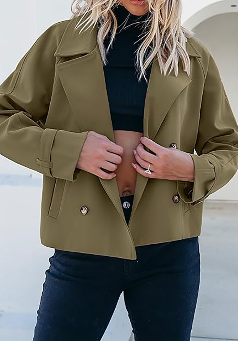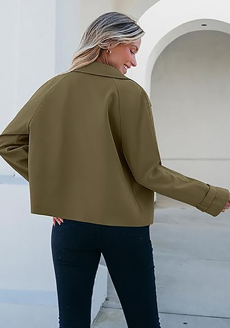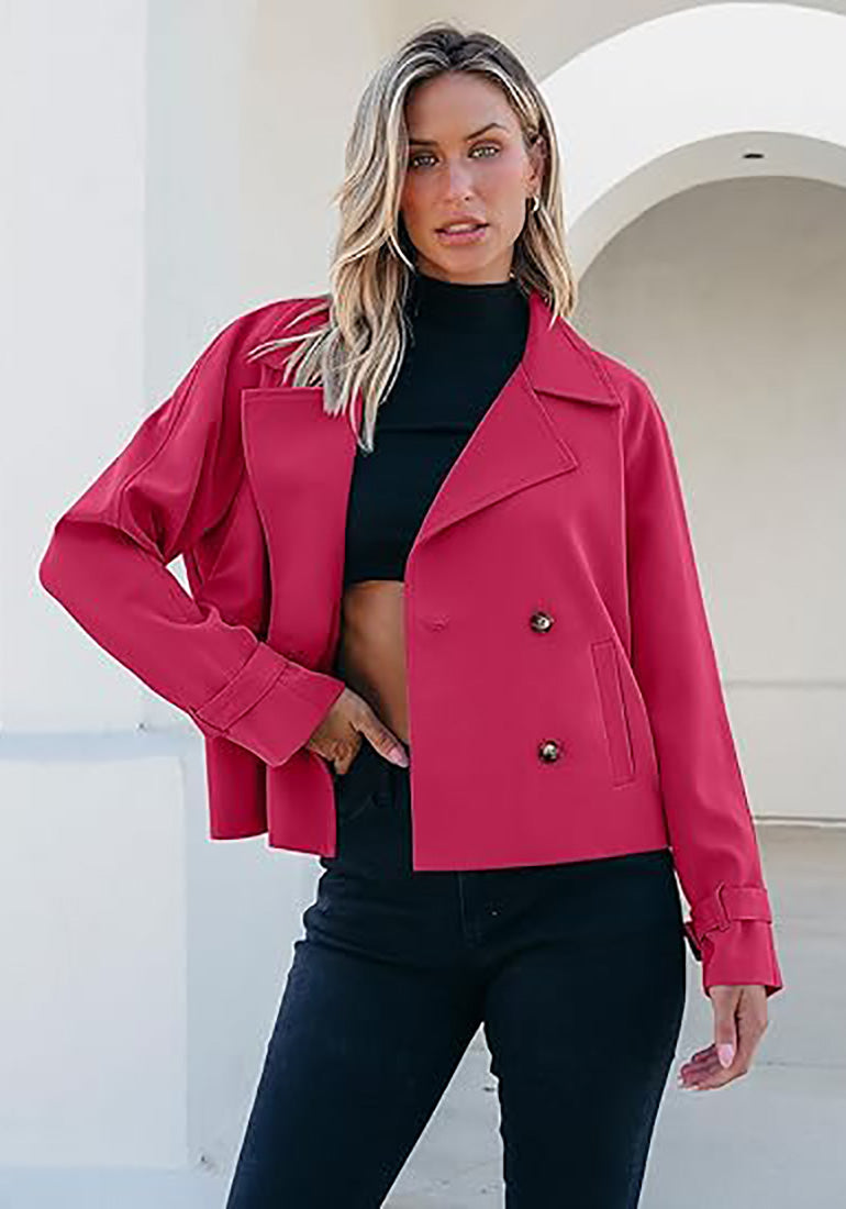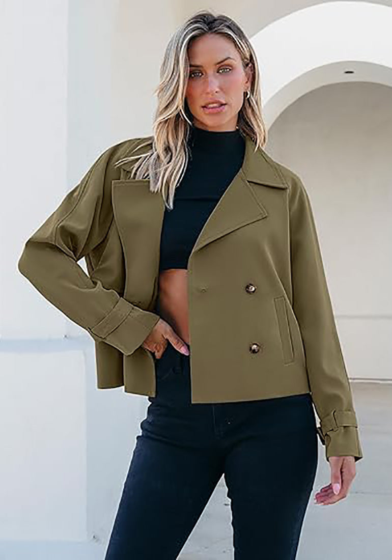 - These womans jackets for fall have notched lapel and double breasted design that adding visual interest and an illusion of layers. The buckle sleeves of short trench coat for women add a women charm, make you look elegant and stylish.