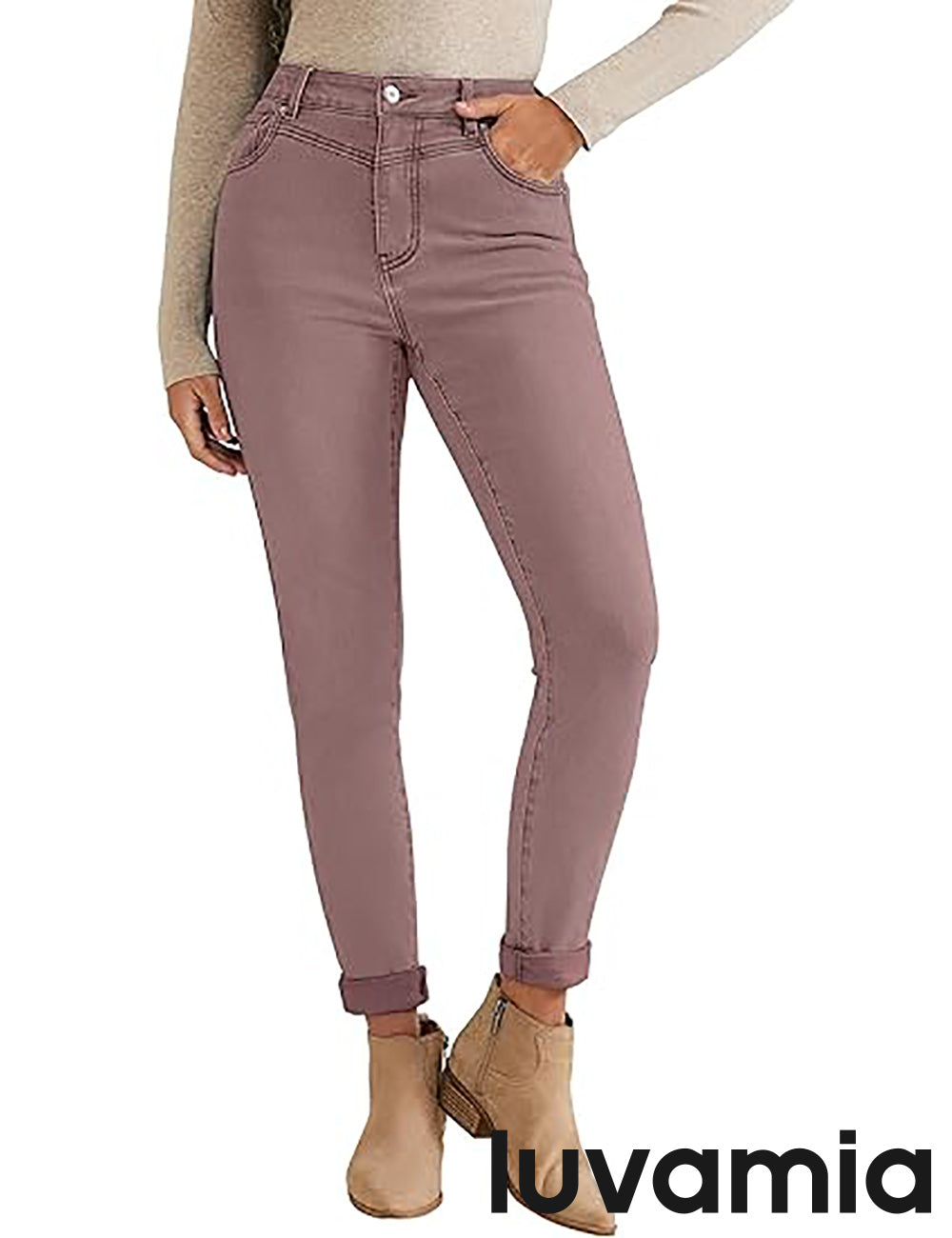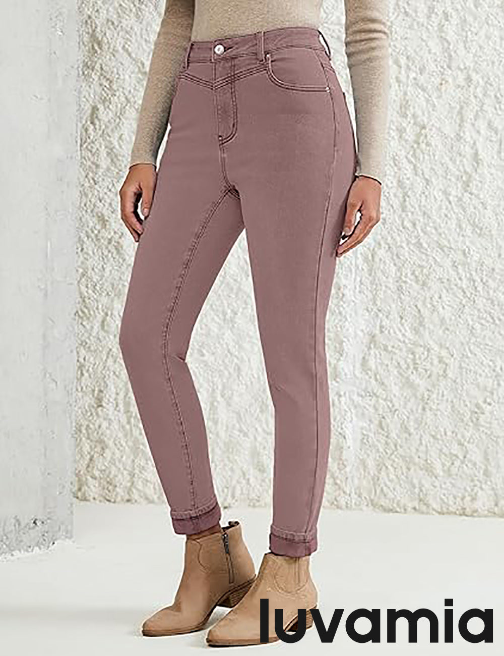 The thin fleece lining delivers just-right warmth for cool days, avoids the bulk of thick fleece, and keeps denim pants for women lightweight, letting you stay warm while maintaining a slim look and moving freely with ease