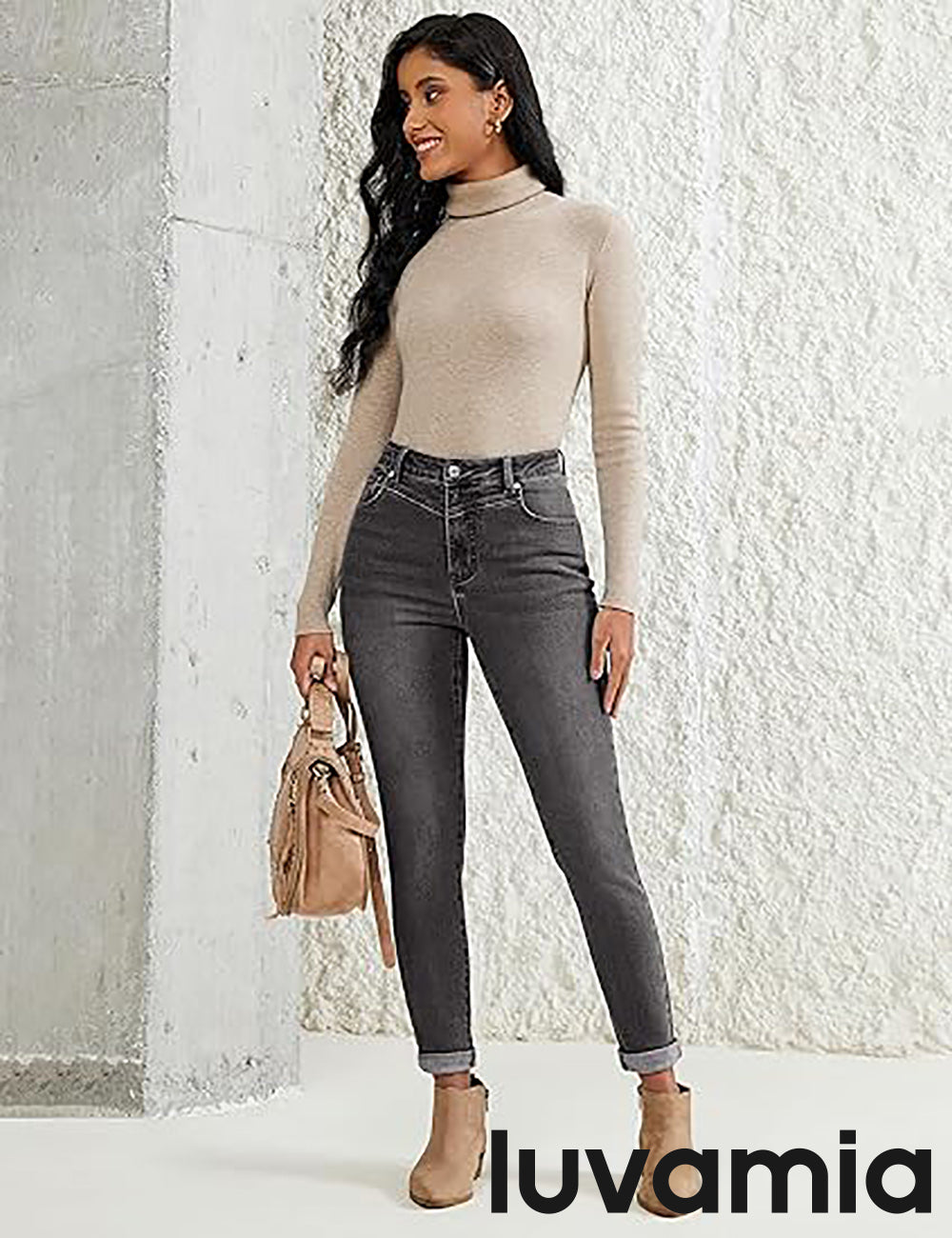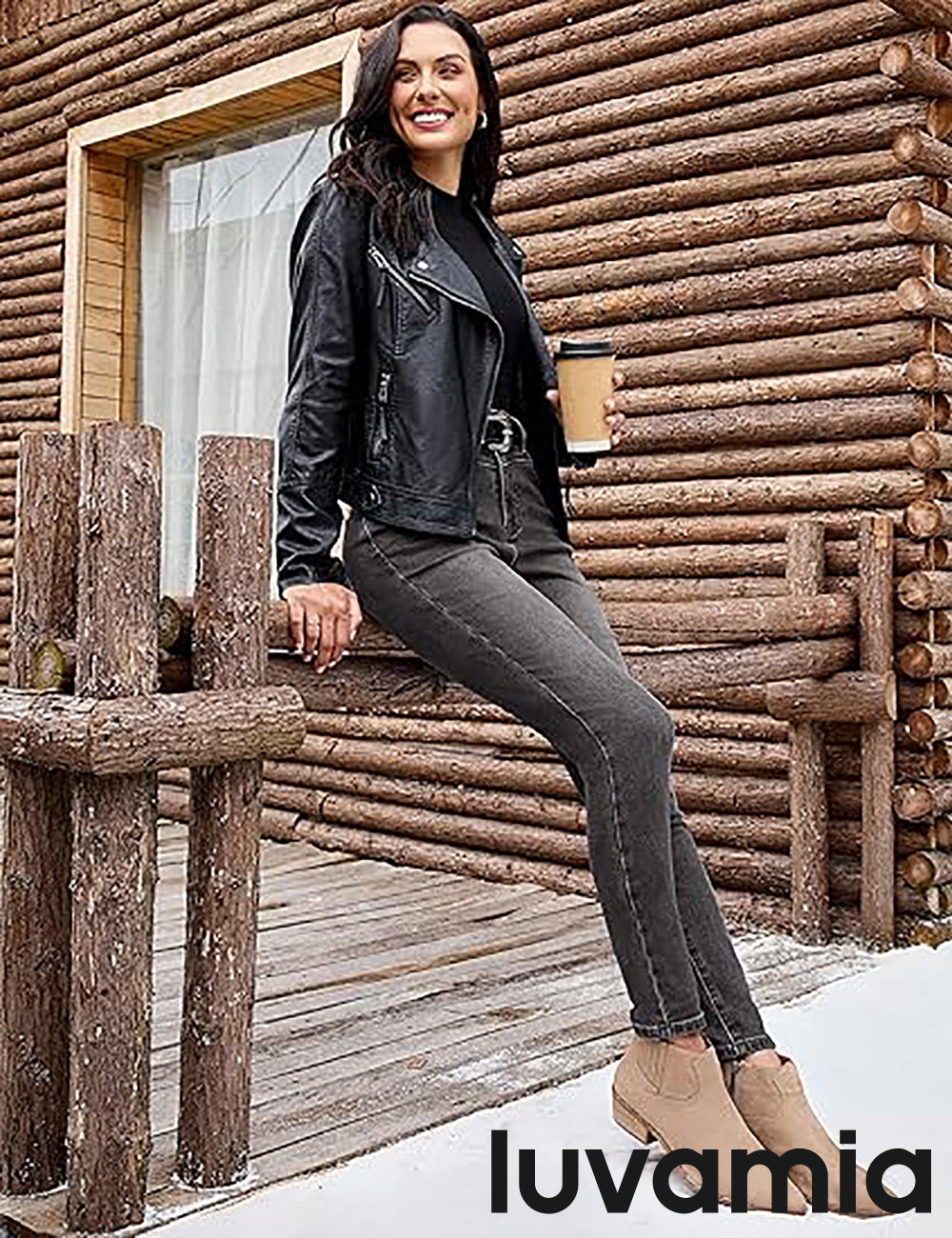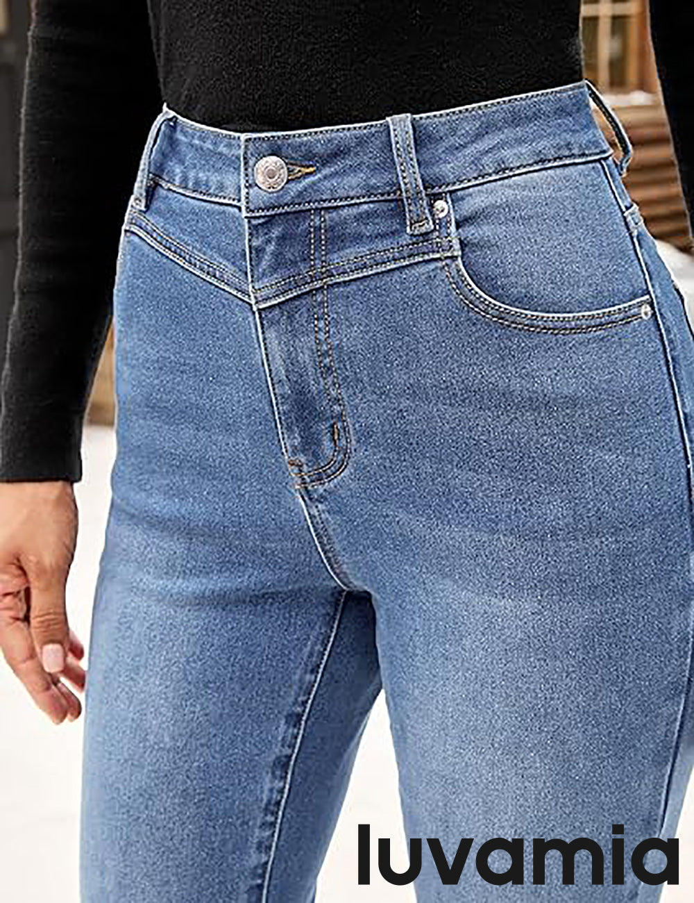 luvamia Skinny Jeans for Women Thin Fleece Lined High Waisted Front Yoke Fall Thermal Stretchy Denim Pants Warm Jeggings