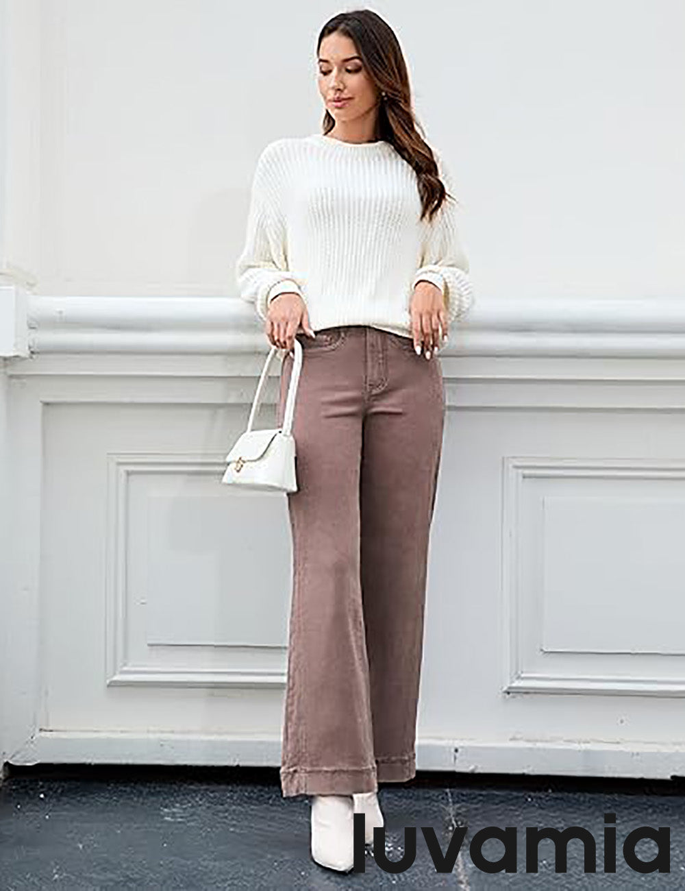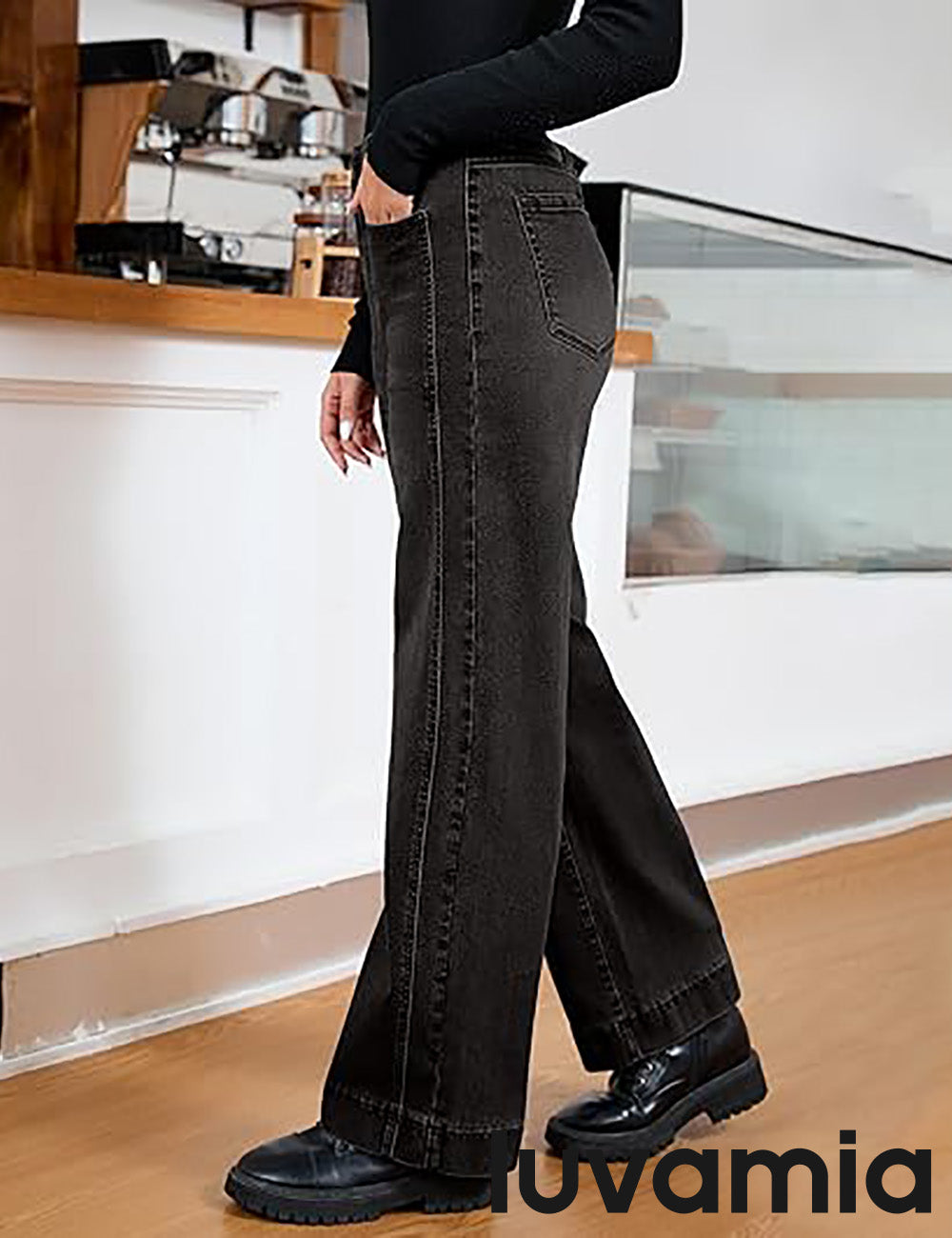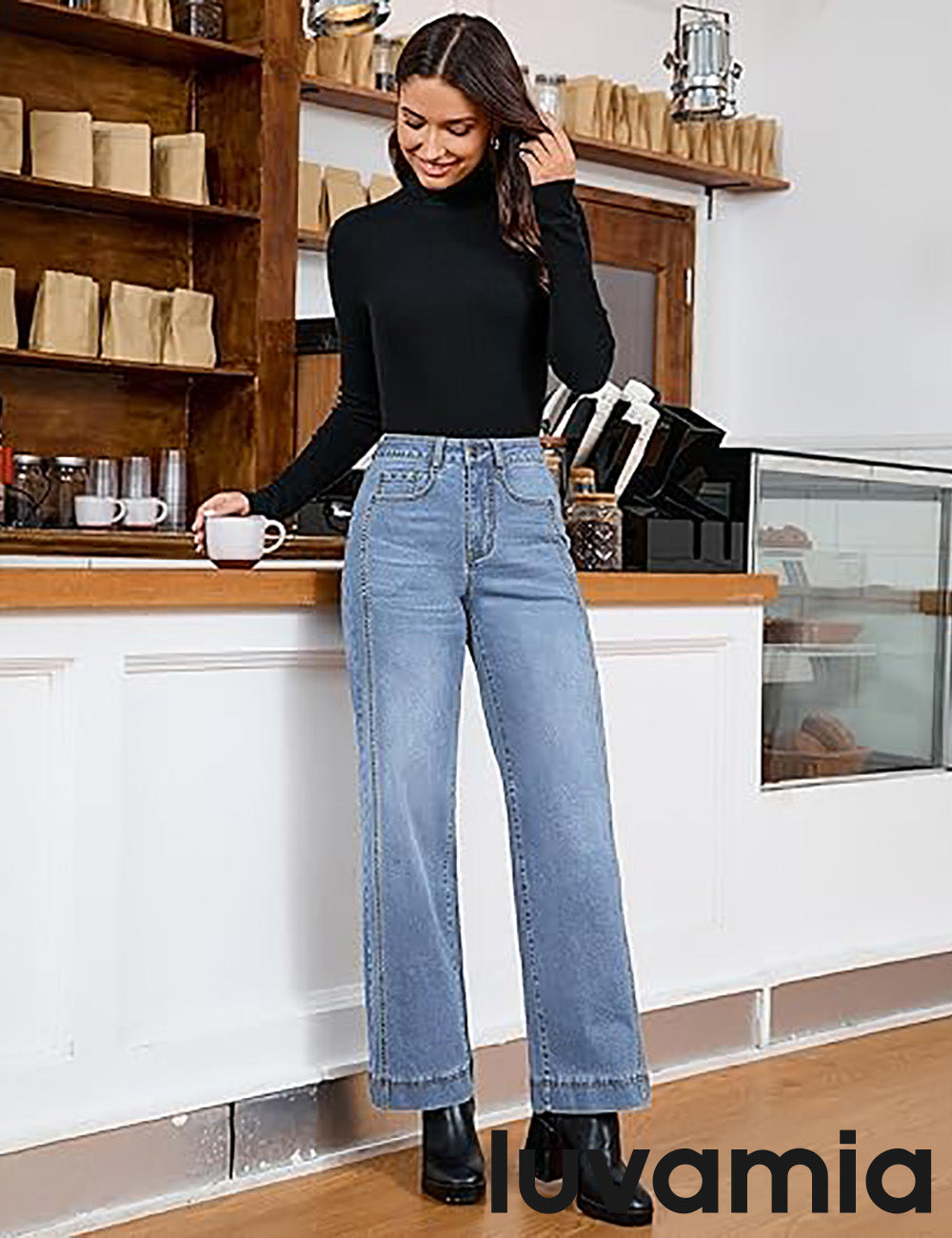 LUVAMIA Timeless High Waisted Flare Jeans Breathable Denim All Season Styling Functional Pockets